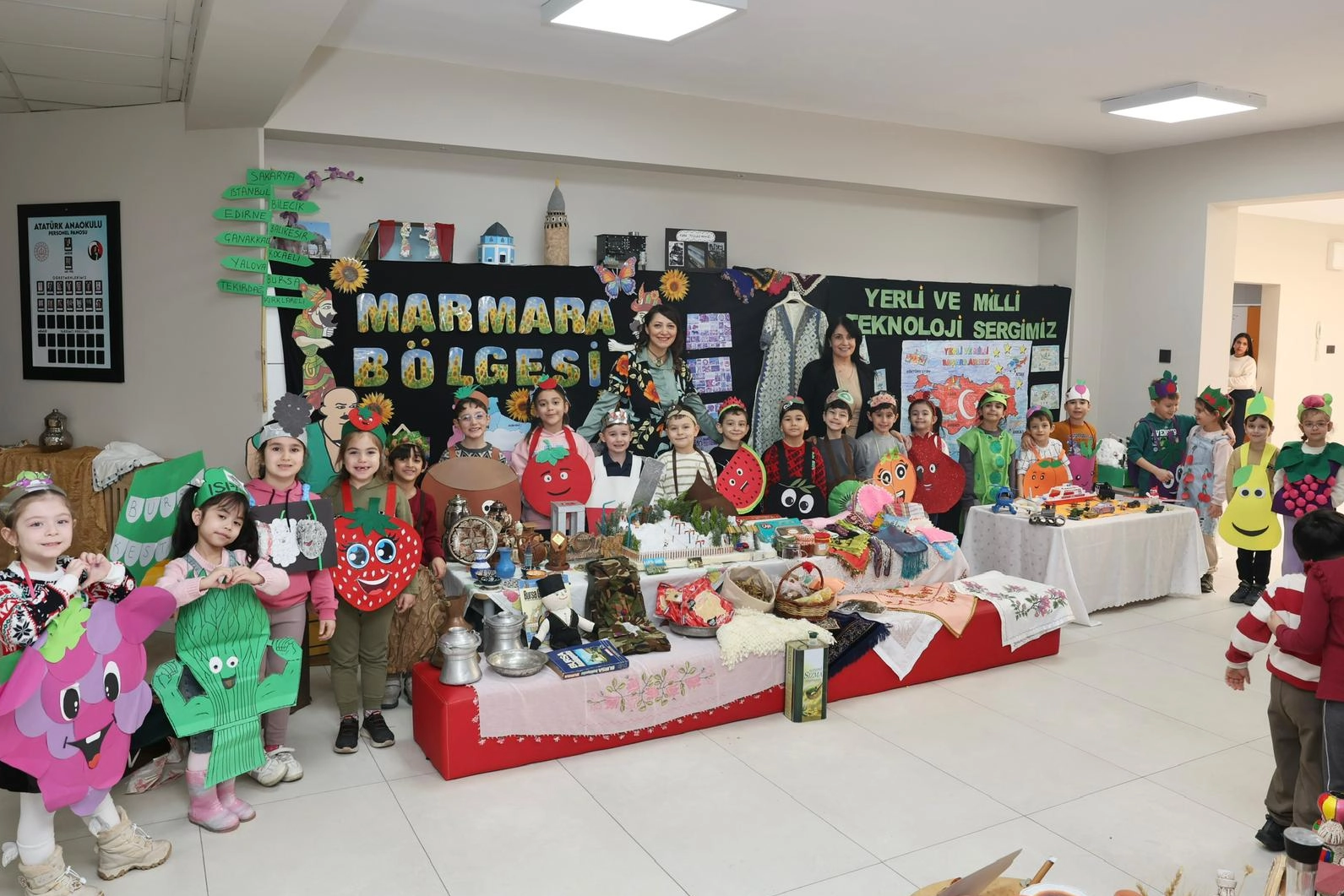 Etkinlik kapsamında minik öğrenciler, öğretmenleri ve okul personelinin desteğiyle Türkiye’nin 7 bölgesini temsil eden masalar hazırladı. Her masa, ait olduğu bölgenin geleneksel kıyafetleri ve yöresel yiyecek-içecekleriyle donatıldı. Öğrenciler, masaların yanı sıra yerli ve milli teknolojiyi tanıtan bölümleri de deneyimleme fırsatı buldu.
