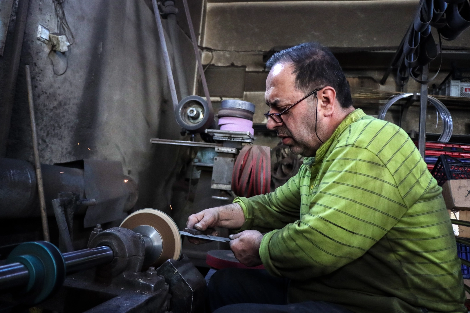 Bayram öncesi siparişleri karşılamak için yoğun bir mesai harcayan bıçak ustaları, çelik levhaların makasla kesilmesiyle başlayan üretim sürecini; ısıtma, şekillendirme, parlatma, sap takma ve bileme aşamalarıyla tamamlayarak bıçakları kullanıma hazır hale getiriyor.