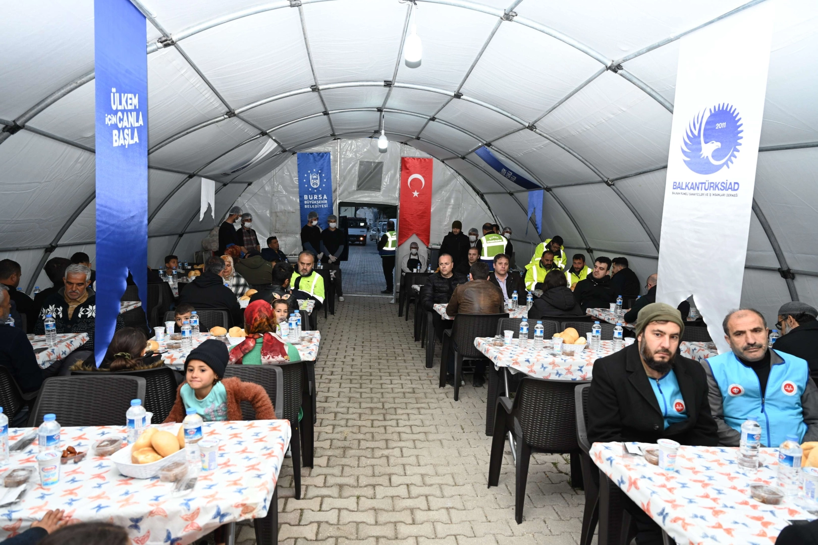 Asrın felaketinde Hataylıların yaralarını sarmak için yoğun mesai harcayan Bursa Büyükşehir Belediyesi, Ramazan’ın manevi iklimini Hatay’da da yaşatıyor. Bursa’da Fevzi Çakmak Caddesi Otoparkı ve Emirsultan Meydanı’nda geleneksel iftar programlarına devam eden Büyükşehir Belediyesi, Hatay’ın Narlıca Mahallesi’nde 3 ayrı noktaya iftar çadırları kurdu. Balkantürksiad ve Türkiye Sağlıklı Kentler Birliği başta olmak üzere hayırseverlerin sponsorluğunda düzenlenen iftarlarda depremzede vatandaşlar da Ramazan manevi hazzını yaşama imkanı buluyor.