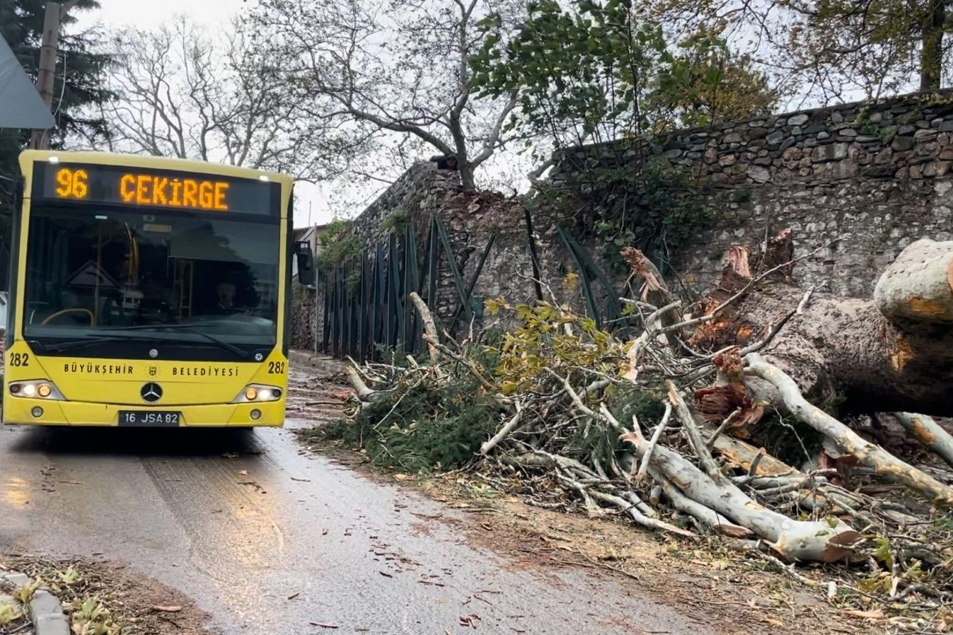 Dün gece etkili olan fırtına hayatı felç etti. Merkez Osmangazi ilçesi Çekirge Mahallesi Kanal Caddesi üzerindeki Hüsnügüzel Kaplıcası'nın bahçesindeki 250 yıllık anıt çınar ağacı kökünden koptu.