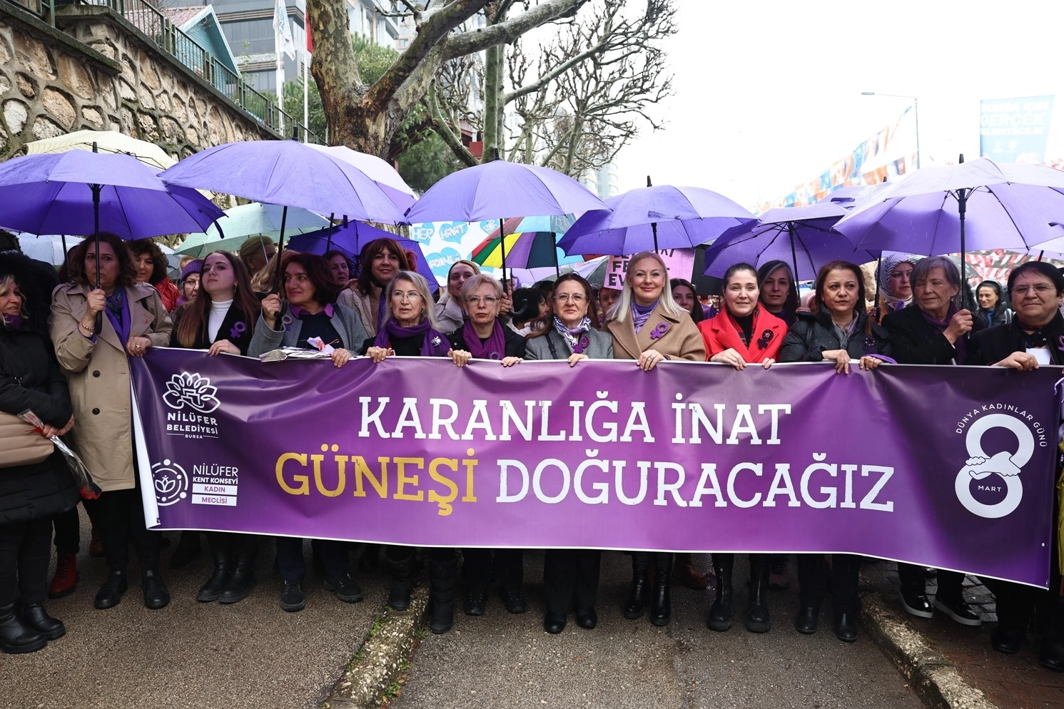 Nilüfer’de kadınlar, 8 Mart Dünya Emekçi Kadınlar Günü’nde ‘Karanlığa İnat Güneşi Doğuracağız’ sloganıyla yürüyüş yaparak, kadına yönelik şiddettin ve eşitsizliklerin son bulmasını istedi. Nilüfer Belediyesi Nilüfer Kent Konseyi ve Nilüfer Kadın Meclisi işbirliğiyle düzenlenen yürüyüş Nilüfer Kent Konseyi önünden başladı. Nilüfer Belediyesi Başkan Yardımcısı Dr. Sibel Özer, Nilüfer Kent Konseyi Başkanı Neslihan Binbaş, Nilüfer Kadın Meclisi Başkanı Nazlı Ünalan ve CHP Nilüfer Belediye Başkan Adayı Şadi Özdemir’in eşi Nuray Özdemir’in de katıldığı yürüyüşe çok sayıda kadın da eşlik etti. Sloganlar eşliğinde gerçekleşen yürüyüş Nilüfer Belediyesi Halk Evi önünde son buldu.
