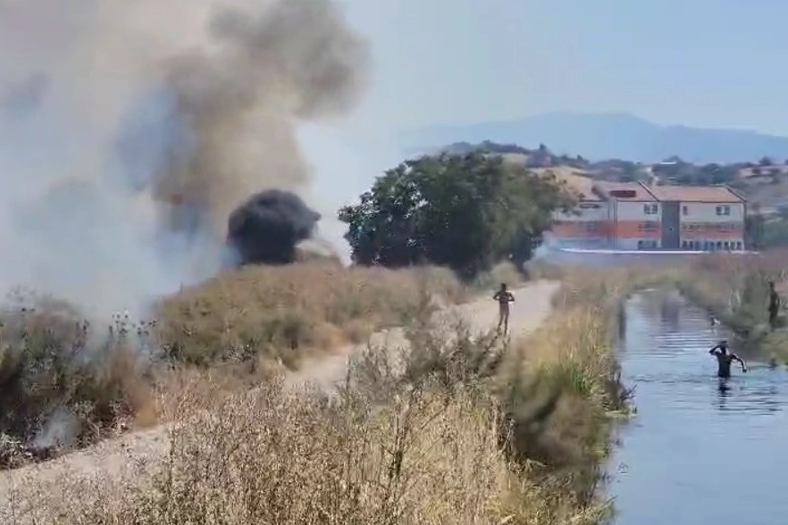 Ancak yangına müdahale sürerken, olay yerinin hemen yakınındaki sulama kanalında yüzen çocuklar dikkat çekti. Hava sıcaklığının 36 dereceyi bulduğu sırada 6-7 çocuğun yangına sadece birkaç metre uzaklıktaki beton köprüden suya atlaması, tehlikeyi hiçe sayan anlara sahne oldu.