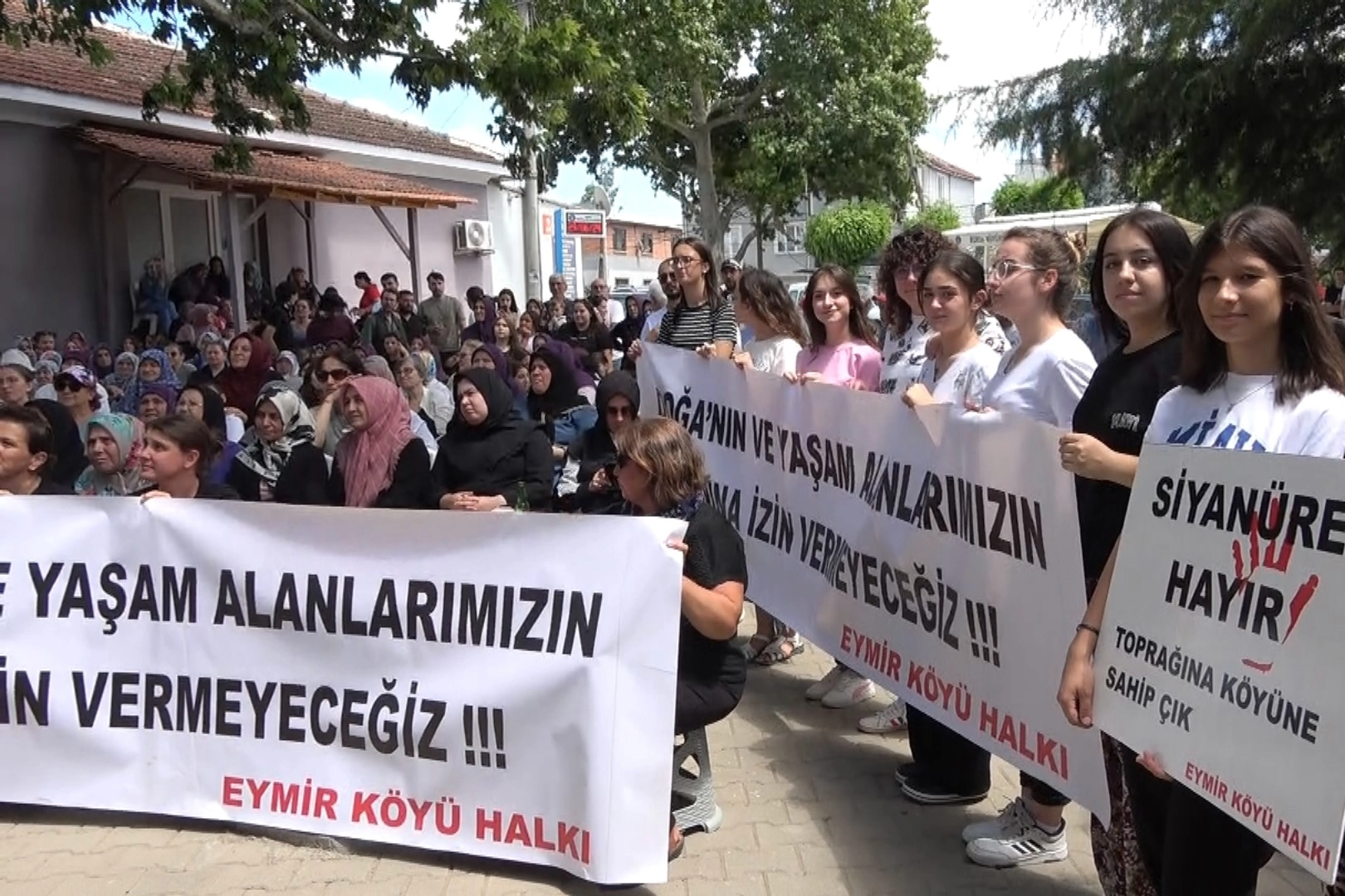Maden arama çalışmalarının daha önce de yapıldığını fakat köylülerin tepkileri sonucu geri adım atıldığını belirten Eymir Mahallesi sakini Ayşegül Döğer, “Bizlerinde her zaman değerli gördüğü ülkemizin önemli kurumlarından MTA tarafından, 70'li yıllarda 2 ayrı araştırma ve sonrasında 89 ve 90 yıllarında kapsamlı bir araştırma daha yapılıyor. Son olarak ta 3 buçuk yıl önce bir çalışma yapıldı ve bugün yine ormanlarımızda araştırma yapılmaya devam ediliyor. Ancak bizler, alanın köyümüze yakınlığı sebebiyle her zaman ihtiyaç duyduğumuz ormanlarımızı ve de verimli topraklarımızı korumak için her seferinde bu araştırmaların yapılmasına itiraz ettik. Yüzlerce yıldır bu bölgede yaşayan vatandaşlar olarak, verimli topraklara ve meralara sahip bu alanda, yaşamımızı sürdürebilmemiz ve çocuklarımızın geleceği için çiftçilik ve hayvancılık yapmaya devam etmek istiyoruz. Evet bu yaşam mücadelemizi verirken devletimizden, belediyelerimizden isteklerimiz var. Mesela, kapalı sistem sulamanın ovamızdaki tüm tarlalara ulaşmasını istiyoruz. Devletimizden yeterli mazot desteği istiyoruz. Tohum, fidan, yem ve gübre desteği istiyoruz. Ancak görüldüğü üzere, bu isteklerimiz arasında maden yok. Bizler maden istemiyoruz” ifadelerini kullandı.