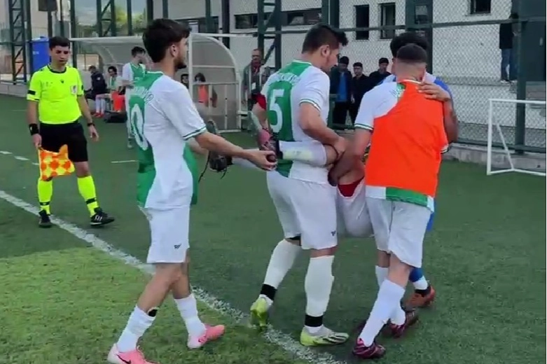 Maçın 17.00’de başlayan karşılaşmasında, Değirmenlikızık Gençlikspor’lu futbolcu Mahmut Kozik, girdiği bir ikili mücadelede talihsiz bir şekilde ayağını kırdı.
