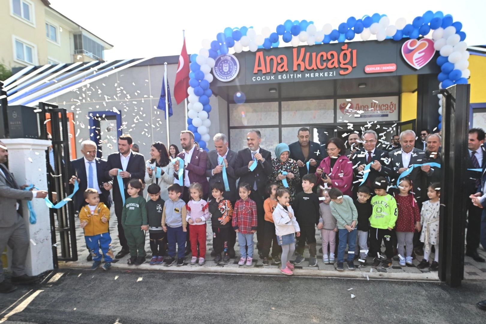 Bursa Büyükşehir Belediyesi’nin özellikle dar gelirli ailelerin çocuklarının da okul öncesi eğitim hizmetlerinden faydalanabilmesi amacıyla 2019 yılında başlattığı Ana Kucakları, zengin müfredatıyla da çocukları geleceğe en iyi şekilde hazırlıyor. Ana Kucağı ücretsiz kreş sayısı 32’ye ulaşırken, Nilüfer ilçesi Üçevler-Demirci mahallelerindeki miniklere hizmet verecek olan ana kucağı da düzenlenen törenle hizmete açıldı. Mart ayı içerisinde eğitime başlayan Üçevler- Demirci ana kucağı ücretsiz kreşinde toplam 145 öğrenci eğitim görüyor. Toplam 1.153 metrekare arsa üstünde 570 metrekare taban alanlı tek kat olarak inşa edilen merkezde, 6 sınıf, yemekhane, teknik alanlar, müdür odası, öğretmenler odası, idari alanlar bulunuyor Ayrıca 1 oyun parkı ve bahçe yer alıyor. 6 sabah ve 6 öğle grubu olmak üzere ikili sistemde eğitim sunuluyor. Törene, Büyükşehir Belediye Başkanı Alinur Aktaş’ın yanı sıra Bursa Milletvekili Emine Yavuz Gözgeç, İl Milli Eğitim Müdürü Dr. Ahmet Alireisoğlu, Cumhur İttifakı ve AK Parti Nilüfer Belediyesi başkan adayı Celil Çolak, meclis üyeleri, muhtarlar ve vatandaşlar katıldı.