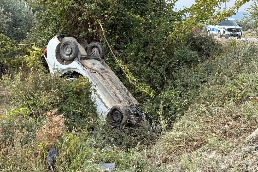 Edinilen bilgilere göre, 16 AEC 479 plakalı otomobilin sürücüsü Hasan Ç., seyir halindeyken sollama yapmak istedi. Ancak bu sırada direksiyon hakimiyetini kaybeden sürücü, kontrolden çıkarak yol kenarındaki zeytinliğe uçtu.