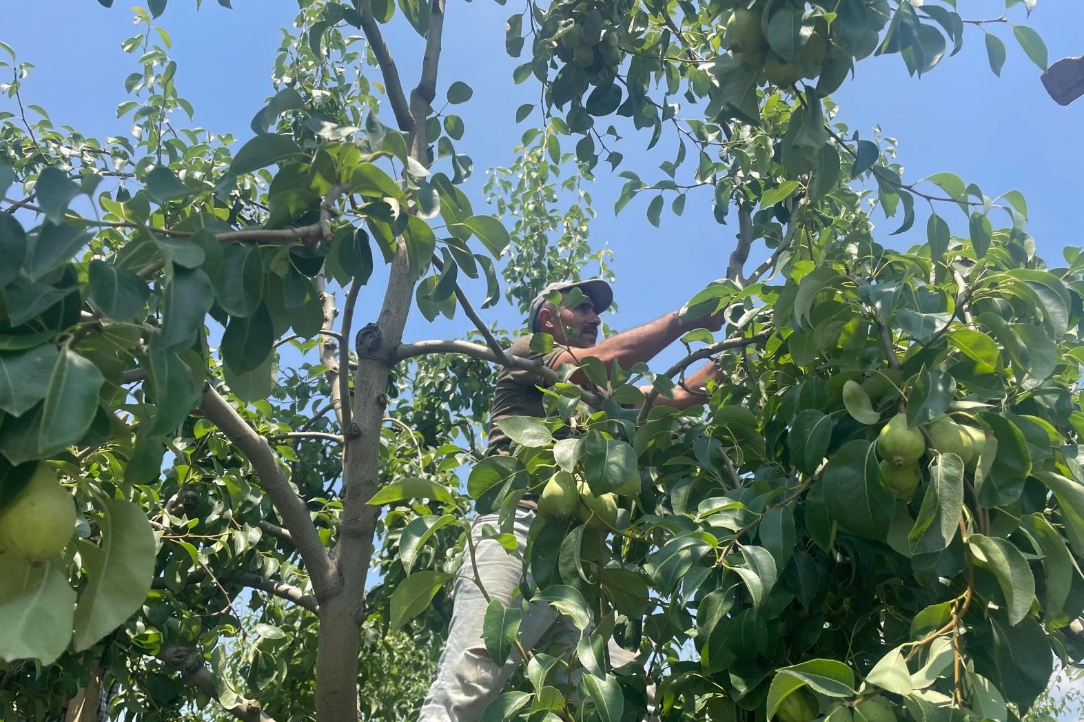 Türkiye'nin armut üretiminde önemli bir merkezi olan Bursa’nın Gürsu ilçesinde, Santa Maria cinsi armut hasadı öncesi ürün dalında 35 ila 40 TL aralığında alıcı buluyor.