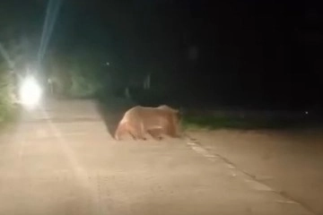 Vatandaşların cep telefonu kameralarıyla bu anları kaydettiğini fark eden ayılar, hızla yolun kenarına doğru kaçmaya başladı. Ancak gittikleri yer ormanlık alan değil, derin bir uçurumdu. Görgü tanığı vatandaşın ifadesine göre, kaçan ayılar, bir anda uçurumdan aşağı yuvarlandı.