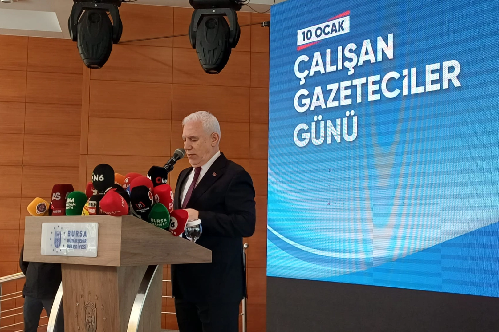 10 Ocak Çalışan Gazeteciler Günü kapsamında Bursa Büyükşehir Belediyesi tarafından düzenlenen programda konuşan Büyükşehir Belediye Başkanı Mustafa Bozbey, basın mensuplarıyla aynı sofrayı paylaşmaktan duyduğu memnuniyeti dile getirdi. Bozbey, “Bu anlamlı günde emek veren arkadaşlarımızla, sizlerle bir arada olmaktan büyük mutluluk duyuyorum. Hepinize hoş geldiniz, sefalar getirdiniz” ifadelerini kullandı.