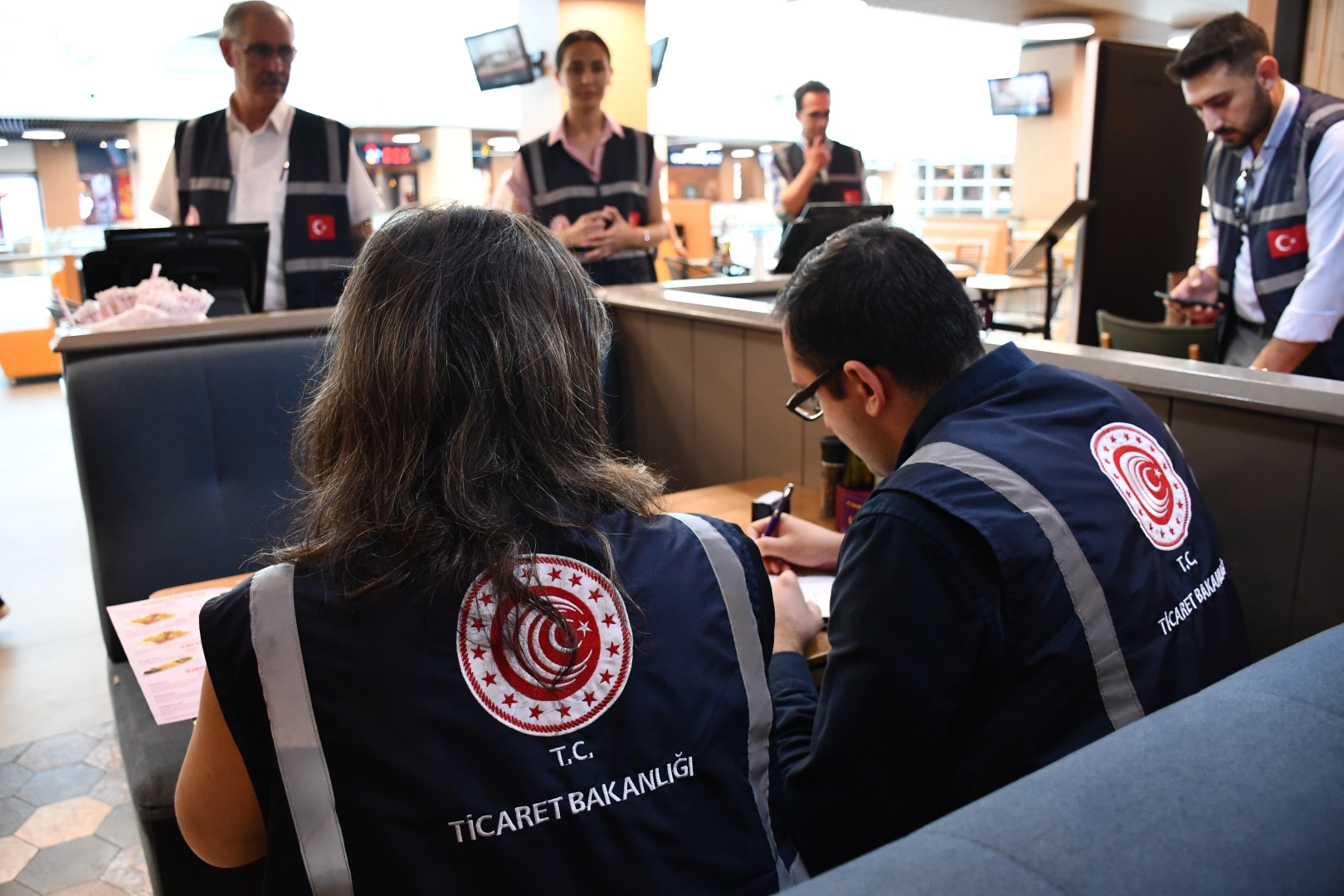 Kentteki bir alışveriş merkezinin yemek katına gelen ekipler, özellikle restoran, lokanta ve kafelerde, tarife ve fiyat listelerinin görünür şekilde işletmenin önüne ve masaların üzerine konulması uygulamasına ilişkin kontrollerde bulundu.
