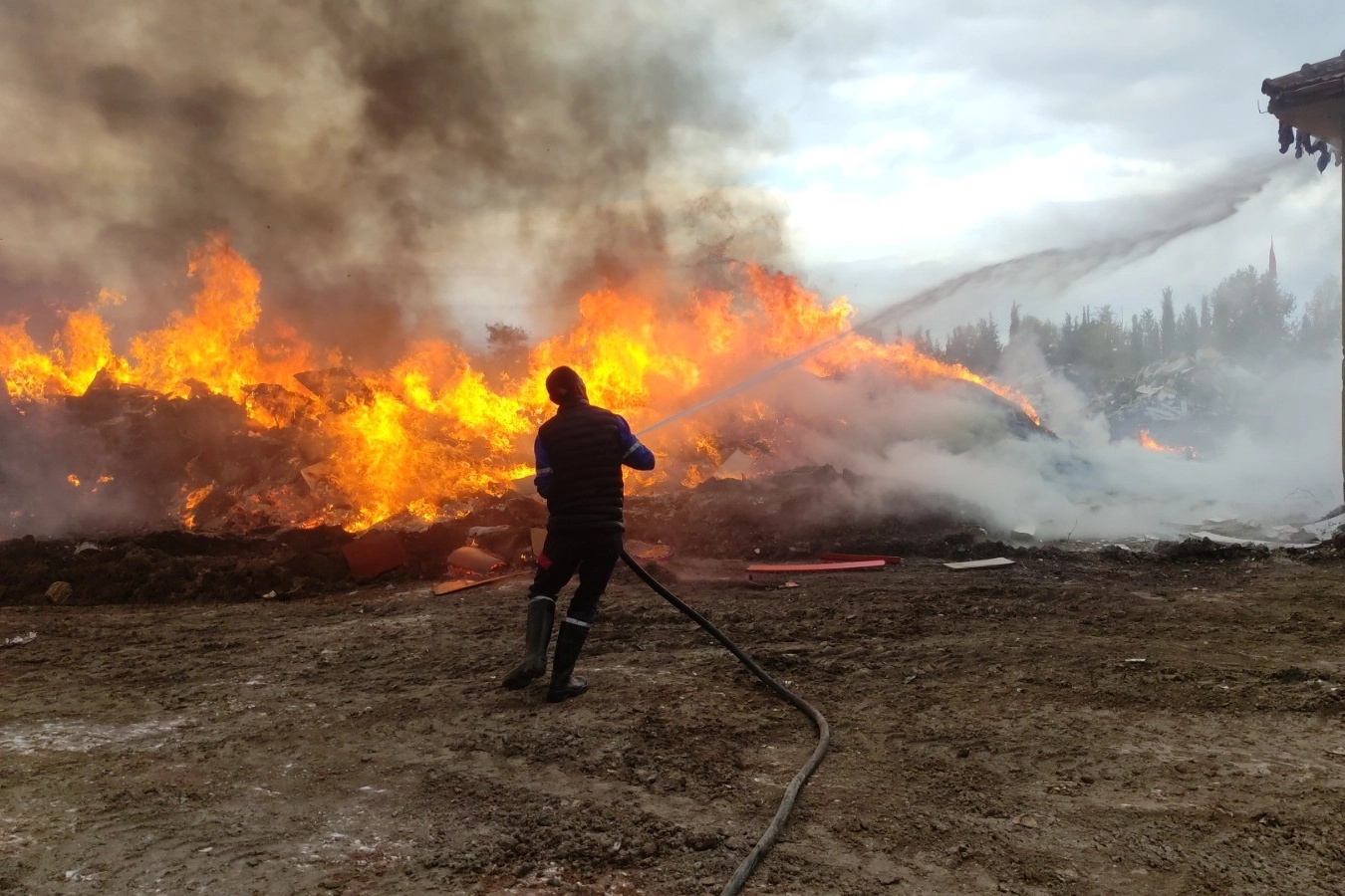 YANGIN KONTROL ALTINDAYangın, ekiplerin müdahalesiyle kontrol altına alınarak söndürüldü. Yangın sonrası şehrin üzerinde kara bulutlar oluştu, bu durum vatandaşlar arasında endişeye yol açtı.
