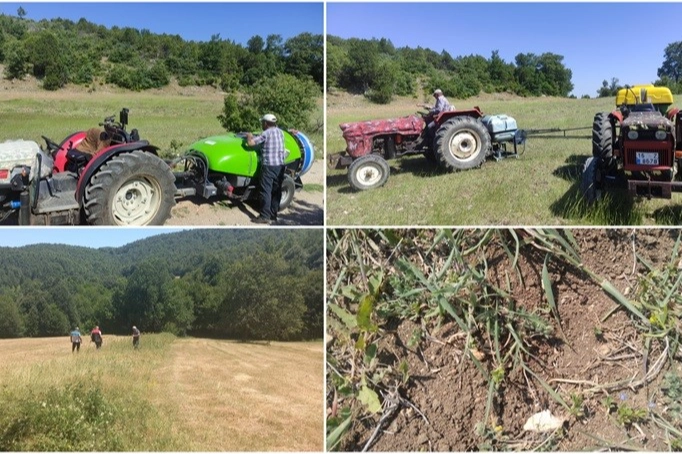 Bursa’nın İznik, Keles, Osmangazi ve Yenişehir ilçelerindeki garsiyat alanlarında, '2025 Bitki Sağlığı Uygulama Programı' kapsamında çekirgeyle mücadele çalışmaları yürütülüyor.