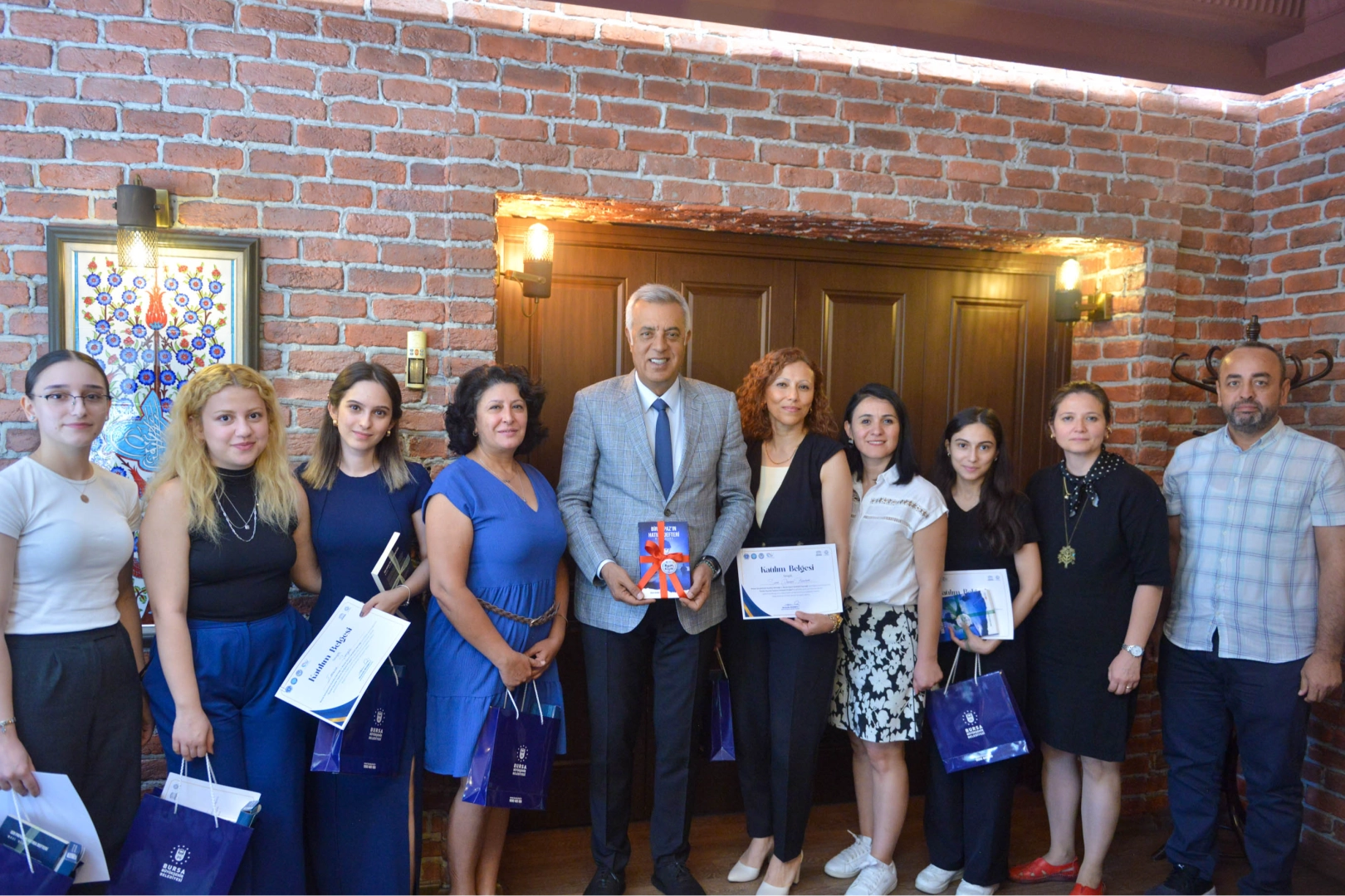 Proje sonunda gönüllü olarak görev alan üniversite öğrencilerine teşekkür amacıyla Bursa Büyükşehir Belediyesi Genel Sekreter Yardımcısı Mehmet Yıldız tarafından katılım belgeleri takdim edildi.