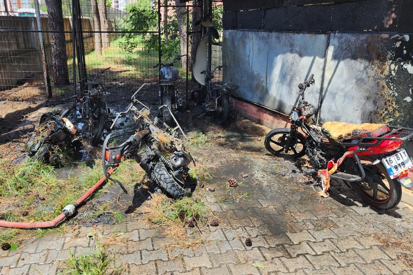 Bursa’nın Mustafakemalpaşa ilçesinde bulunan Mustafakemalpaşa Mesleki Eğitim Merkezi'nde eğitim gören öğrencilerin motosikletleri okul bahçesinde çıkan yangında kül oldu. Alevler kısa sürede yayılarak paniğe yol açtı, öğrenciler tahliye edildi.