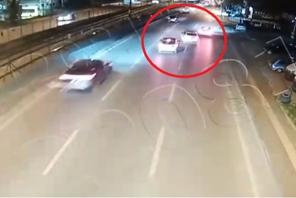 Çevredeki bir iş yerinin güvenlik kamerasına yansıyan görüntülerde, genç sürücünün şeritleri kontrolsüz şekilde değiştirdiği ve kaza yaptığı anlar net olarak görüldü.