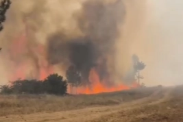 Rüzgârın etkisiyle hızla yayılan ve ağaçların boyunu aşan alevlere ekipler müdahale etti.