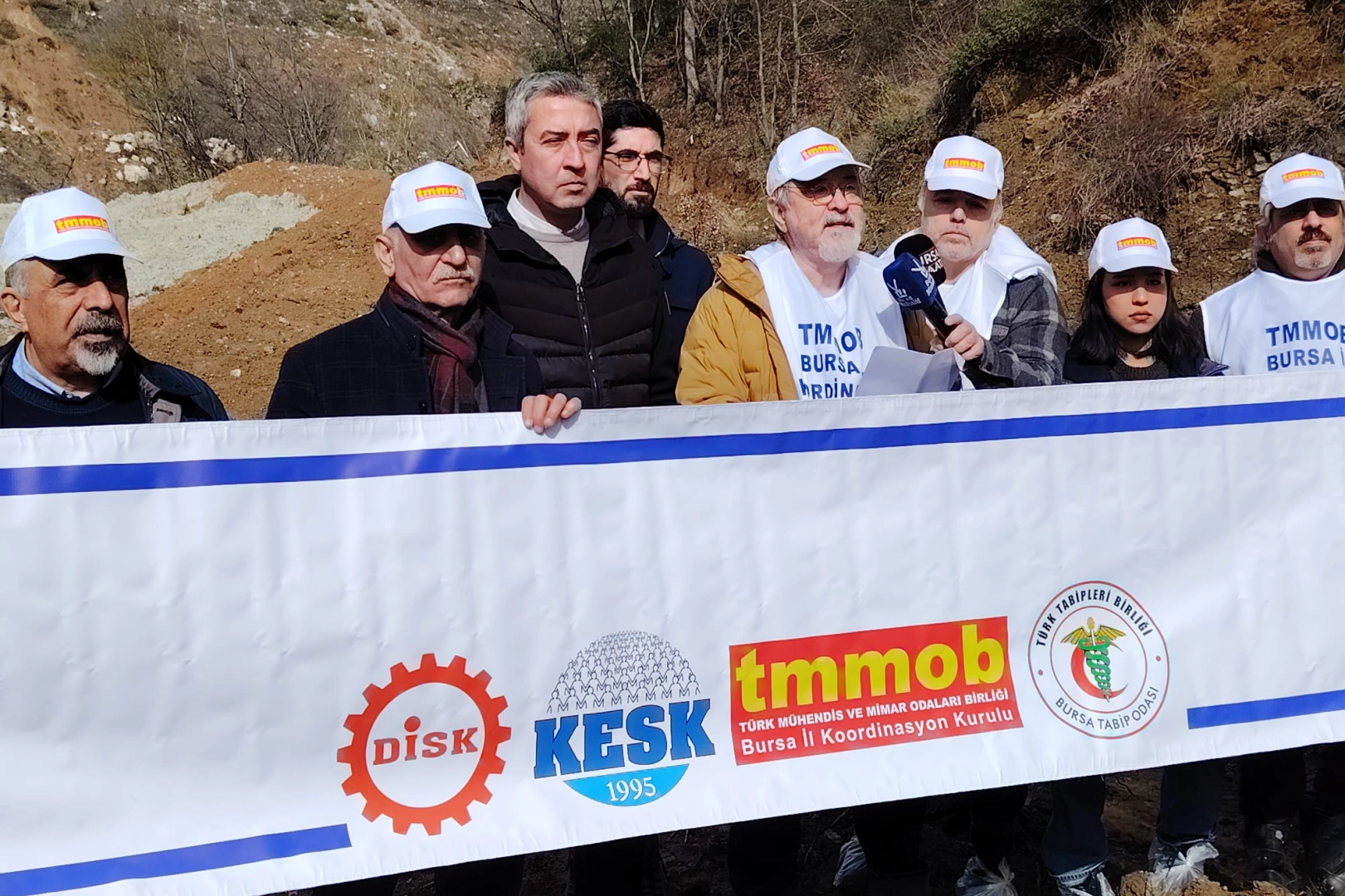 TMMOB Bursa İKK Sekreteri Murat Korkut tarafından okunan açıklamada, ağır metal içeren atıkların yeraltı sularına ve tarım arazilerine karışma riski karşısında acil önlem çağrısı yapıldı.