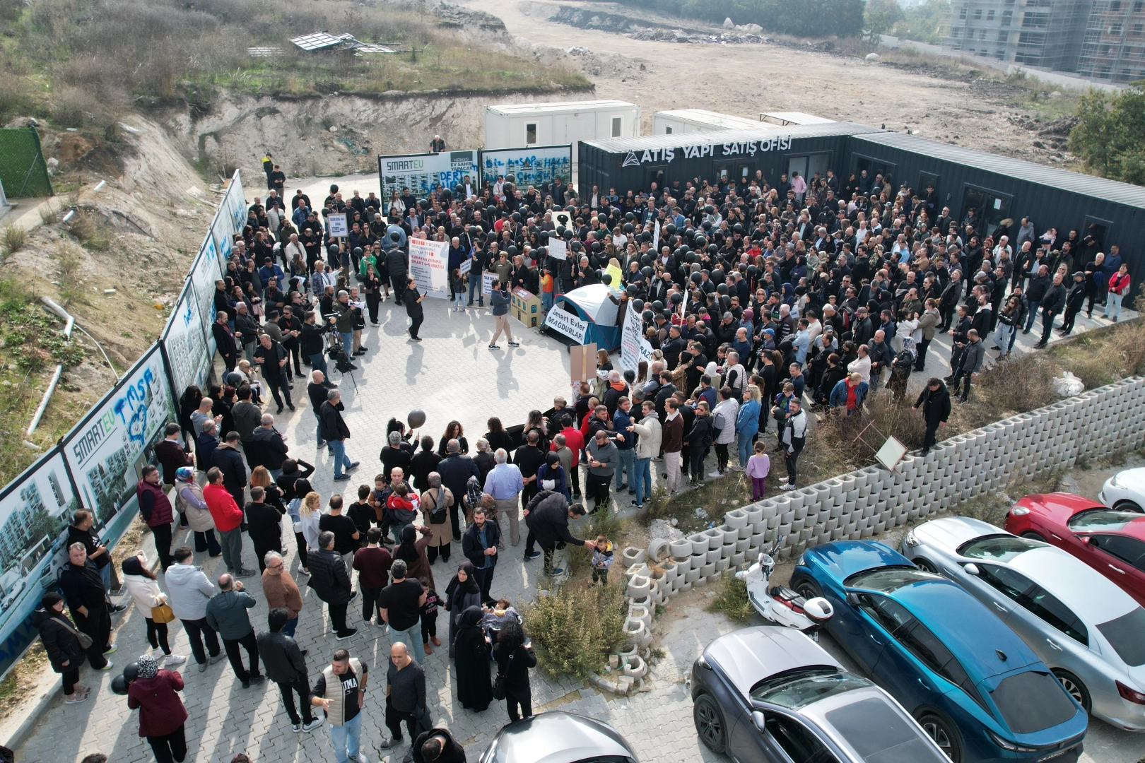“16 Haziran 2025’te konkordato ilan eden Atış Yapı o günden bu yana bizi oyaladı, yanılttı, susturdu. Biz inandık, güvendik ama kandırıldık. Şirket yöneticileri dolandırıcılık suçlamasıyla tutuklandı, firmaya kayyım atandı. Ancak aradan geçen beş ayda bir çivi bile çakılmadı. Şantiyeler suskun, umutlarımız tükeniyor.”