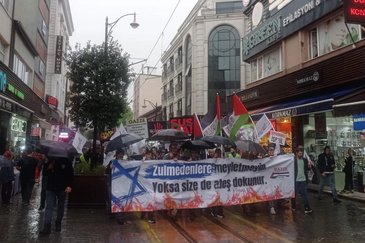 Katılımcılar, Türk ve Filistin bayrakları taşıyarak sloganlar eşliğinde 15 Temmuz Demokrasi Meydanı’na kadar yürüdü. “Gazze için adalet”, “Filistin halkı yalnız değildir” ve “İsrail terörüne son” yazılı pankartlar taşıyan vatandaşlar, yürüyüş boyunca İsrail’in Gazze’de sürdürdüğü saldırılara karşı tepkilerini dile getirdi.