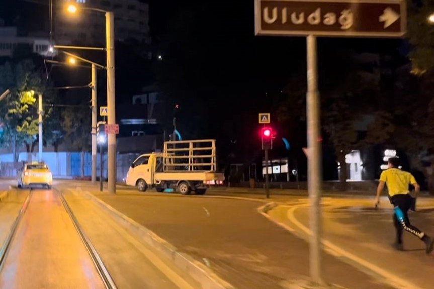 Bursa Emniyet Müdürlüğü Trafik Denetleme Şube Müdürlüğü ekipleri, merkez Osmangazi ilçesi Altıparmak Caddesi üzerinde rutin alkol uygulaması gerçekleştiriyordu. Bu sırada 16 AEY plakalı kamyonetin hareketlerinden şüphelenen ekipler, araca ‘Dur’ ihtarında bulundu. Ancak kamyonet sürücüsü, ihtara uymayarak ters yöne girip kaçmaya başladı.