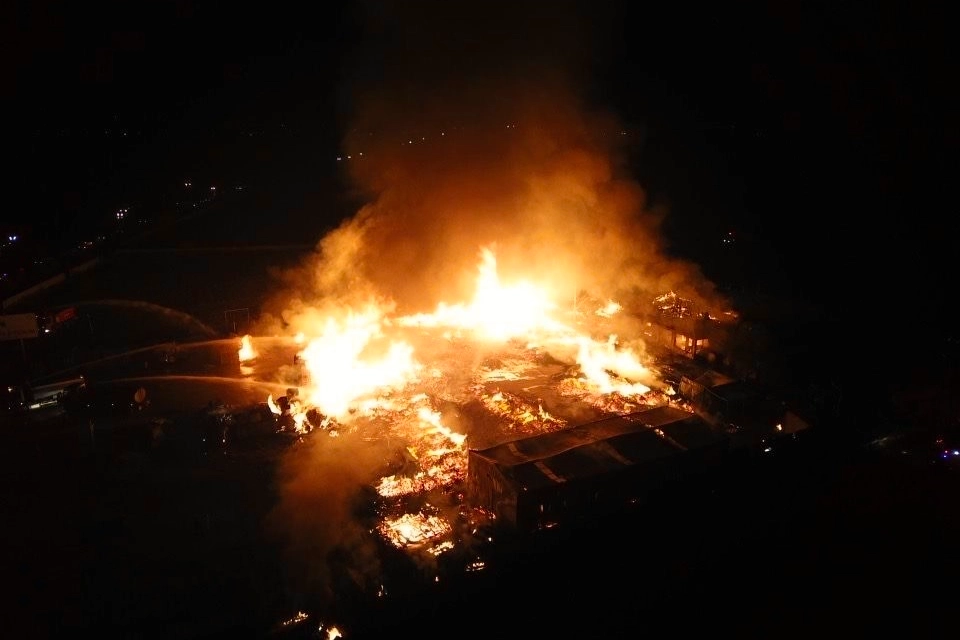 Dile, "Köprü altında balık tutuyorduk ve gökyüzünde kıpkırmızı bir ışık gördük. Yangının olduğu yere yürüdüğümüzde palet fabrikasının alevler içinde olduğunu anladık" dedi.