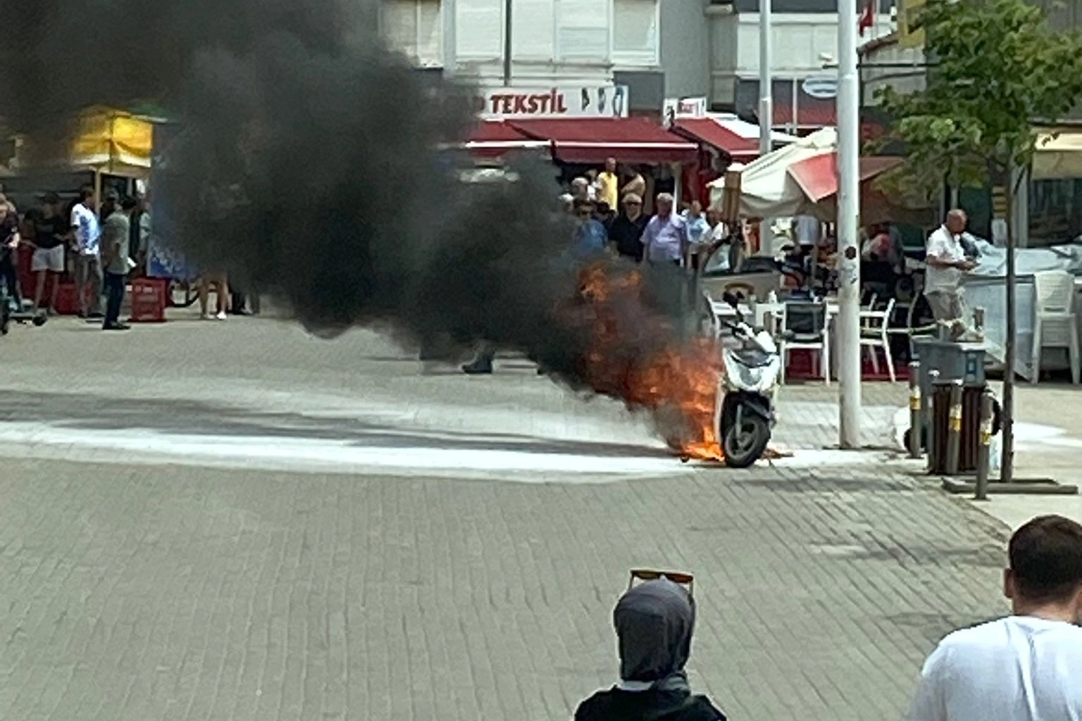 YANGINA İLK MÜDAHALE YANGIN TÜPÜYLE YAPILDIYangın tüpüyle yapılan ilk müdahaleye rağmen motosiklet alevlere teslim oldu. Kısa sürede kontrol dışına çıkan yangın, motosikletin tamamen yanarak kullanılmaz hale gelmesine sebep oldu. Yangının çıkış sebebi henüz belirlenemezken olayla ilgili tahkikat başlattı. Vatandaşlardan yangın riskine karşı dikkatli olmaları istendi.