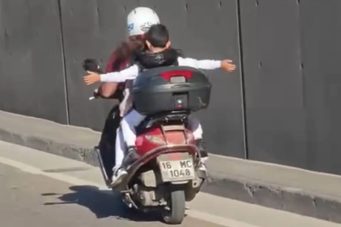 Bursa’nın Yıldırım ilçesinde, Ankara Yolu Caddesi üzerinde meydana gelen olay, trafikteki sürücüleri ve çevredekileri tedirgin etti. Bir motosiklet sürücüsü, arkasına herhangi bir koruyucu ekipman kullanmadan iki küçük çocuğu alarak trafiğe çıktı. Hem sürücünün hem de çocukların güvenliği büyük risk altına girdi.