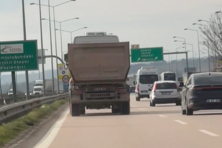Olay, Bursa Çevre Yolu'nda meydana geldi. Trafik kuralları gereği ağır tonajlı araçların girmesinin yasak olduğu en sol şeritte seyreden bir hafriyat kamyonu, diğer sürücülerin dikkatini çekti. Yasak şeridi kullanmasına rağmen hız kesmeyen kamyon sürücüsü, trafikteki güvenliği riske attı.