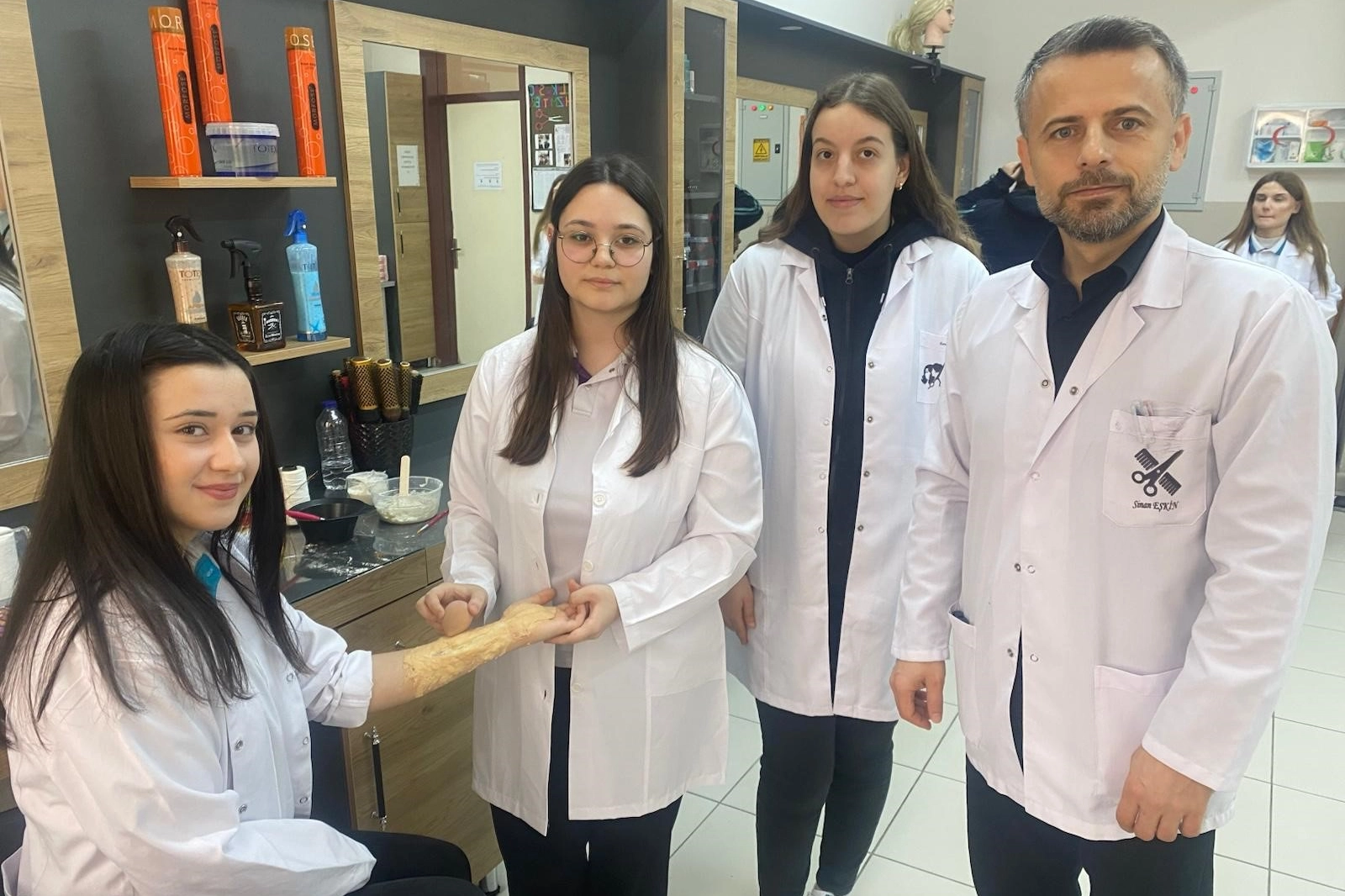 Güzellik Hizmetleri Öğretmeni Sinan Eşkin, öğrencilerin eğitim sürecinin hem teorik hem de yoğun uygulama ağırlıklı olduğunu dile getirdi.