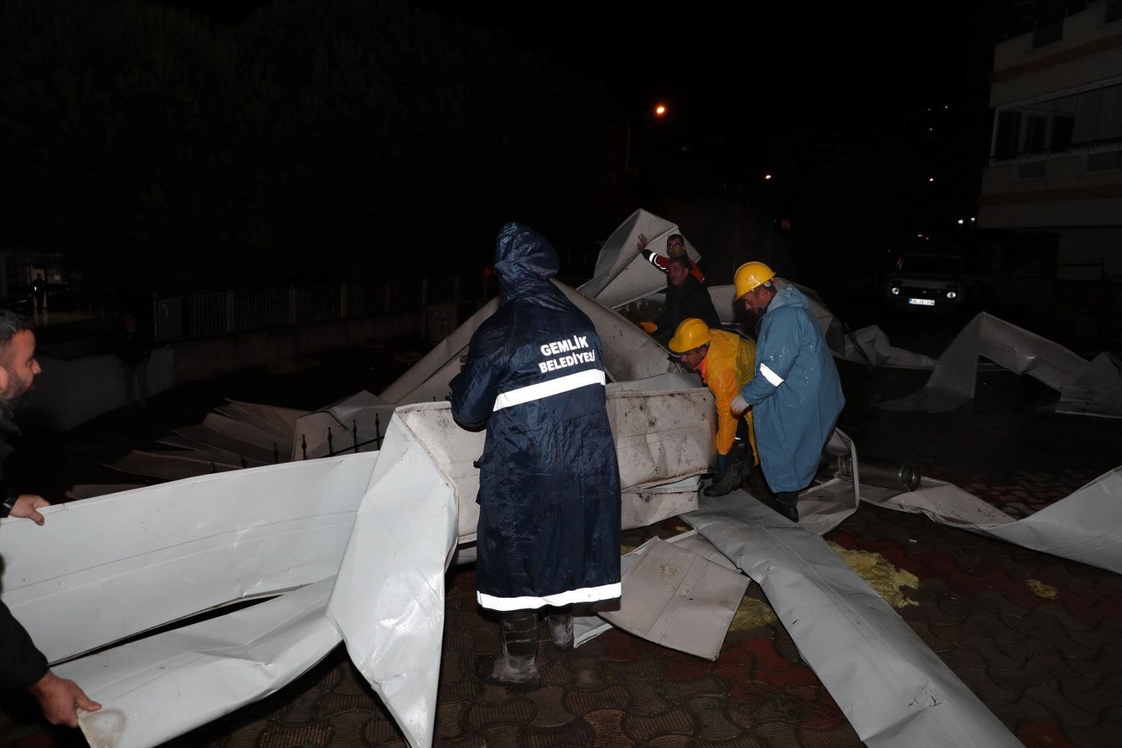 Vatandaşlar tarafından bildirilen ihbarlar sonucu Gemlik Belediyesi ekipleri 2 kamyon, 1 dozer, 1 JCB ve yaklaşık 50 personeliyle, okulun bulunduğu alana gelerek itfaiye ekipleri, kolluk kuvvetleri ve Mahalle Afet Gönüllüleri ile birlikte ilk müdahalelerini gerçekleştirdi. Okulun çatısından kopan metal parçalar kamyonlara yüklenerek bölgeden uzaklaştırıldı.