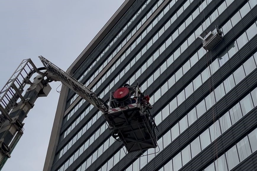 İtfaiye sepetiyle aşağıya indirilen işçilerin sağlık durumlarının iyi olduğu öğrenildi.