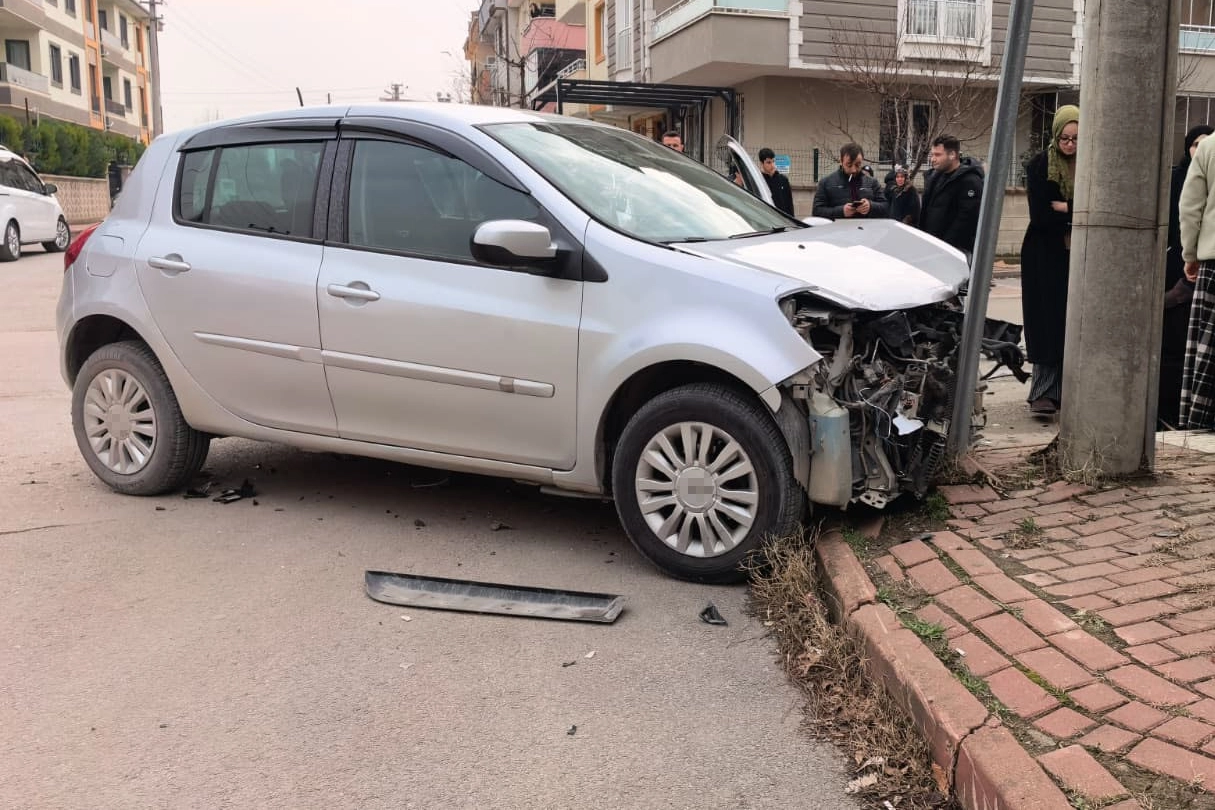 Kazanın etkisiyle kontrolden çıkan araç beton direğe çarparak durdu.