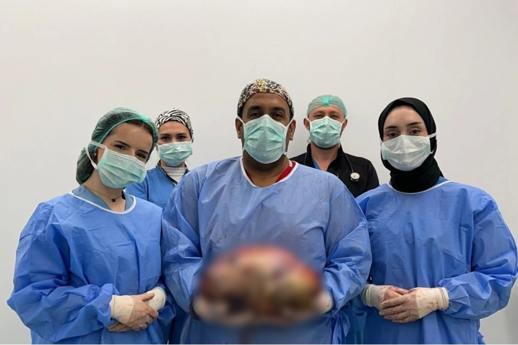 EKİP ÇALIŞMASIYLA RİSKLER MİNİMİZE EDİLDİBu denli büyük operasyonlarda risklerin fazla olduğunu belirten Dr. Özer, ameliyatın farklı branşlardan uzmanlarla birlikte planlandığını söyledi: “Kadın doğum, radyoloji ve anestezi uzmanlarımızla koordineli çalıştık. Kitleyi dikkatle inceledik, yerleşim alanını ve risklerini detaylıca analiz ettik. Her adımı önceden belirleyerek ilerledik.”