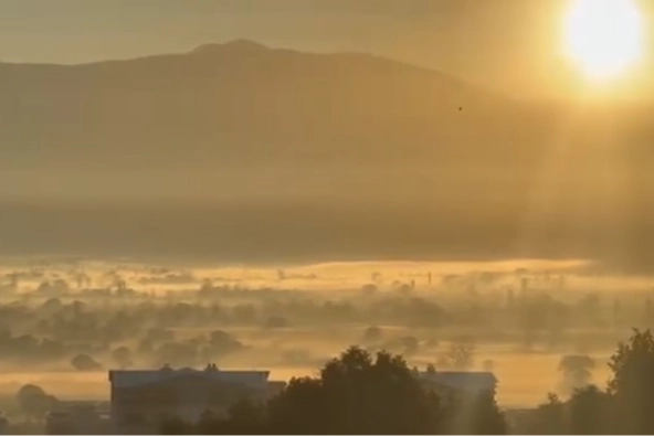 Günün en çarpıcı görseli ise sabah saatlerinde yaşandı. Normalde parlak bir şekilde doğması beklenen güneş, yoğun sis tabakasının ardında adeta kayboldu. Hafifçe sızan güneş ışınlarının sisle birleşimi, gökyüzünde pastel tonlarda, seyirlik kartpostallık manzaralar oluşturdu.