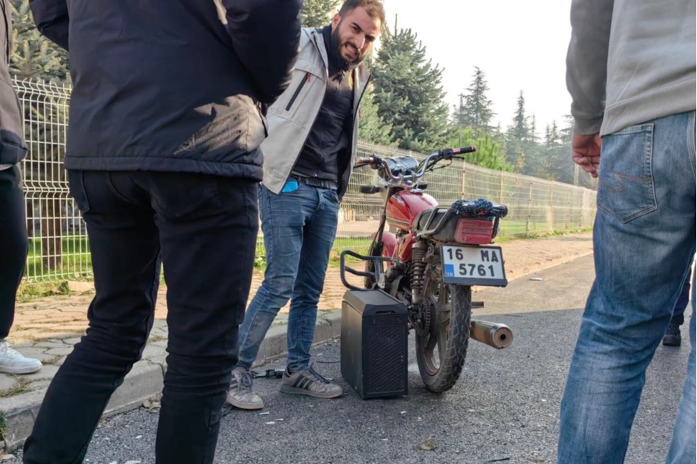 Kaza, İnegöl ilçesi Burhaniye Mahallesi Barbaros Caddesi üzerinde meydana geldi. Edinilen bilgiye göre, caddesi üzerinde seyir halindeki Sürücü Mustafa B. (42)Yönetimindeki 16 ADR 878 plakalı kamyonet ile Mahmud N. (26) yönetimindeki 16 MA 5761 plakalı motosiklet çarpıştı. Çarpışmanın etkisiyle devrilen motosikletten düşen sürücü yaralandı. Yaralanan sürücü, acısını unutup taşıdığı masaüstü bilgisayarı sordu. Bilgisayarını bir an olsun bırakmayan yaralı, olay yerine sevk edilen ambulansla elindeki bilgisayarla İnegöl Devlet Hastanesine kaldırıldı.