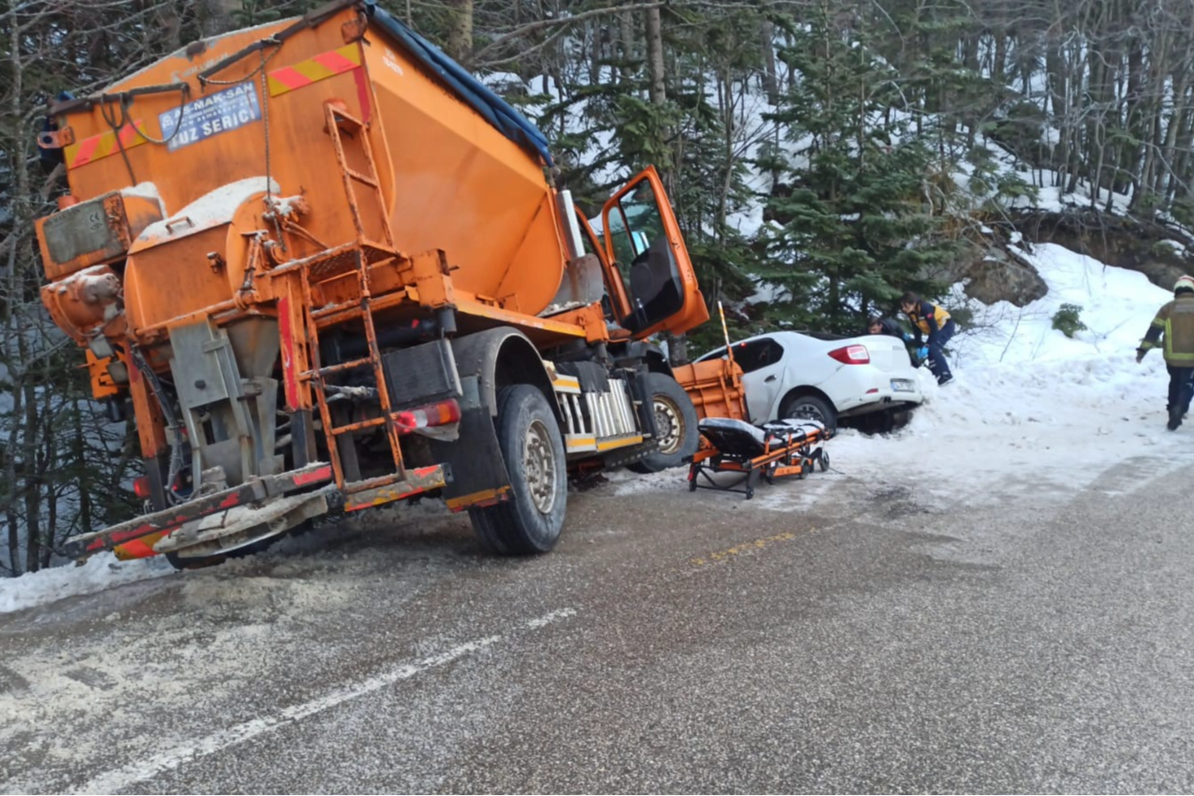 Edinilen bilgilere göre kaza, Uludağ Yolu üzerinde meydana geldi. Kar temizleme çalışması yürüten kar küreme aracı, sürücüsünün direksiyon hakimiyetini kaybetmesi sonucu seyir halindeki bir otomobille çarpıştı. Çarpışmanın etkisiyle otomobil yoldan çıkarak şarampole savruldu.