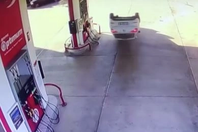 Takla atan otomobil bir akaryakıt istasyonuna daldı. Ters dönen otomobil yaklaşık 50 metre sürüklendikten sonra akaryakıt pompalarının yanında durdu.