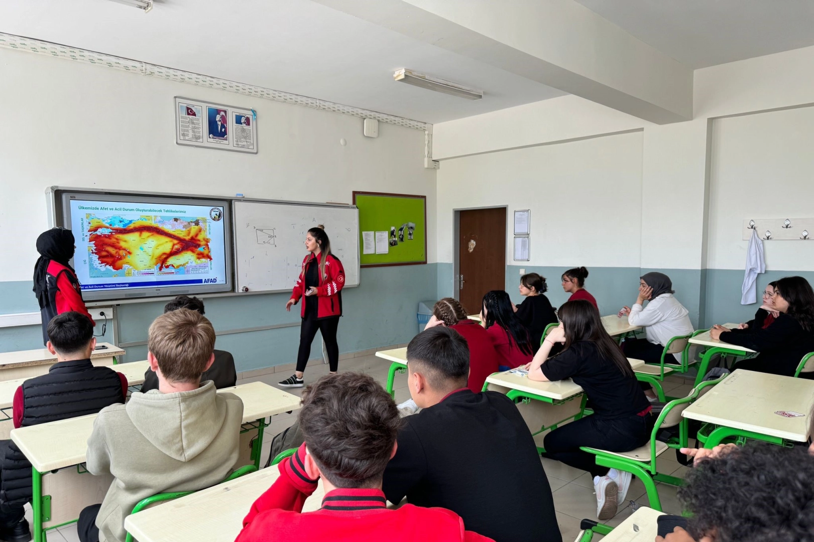 Hacı Sevim Yıldız-3 Mesleki ve Teknik Anadolu Lisesi öğrencilerine yönelik düzenlenen doğal afet farkındalık eğitimlerinde, İNDAK yöneticileri ile üniversite öğrencileri sınıflarda öğrencilere eğitimler verdi. Deprem çantası içeriği, deprem öncesi ve sonrasında yapılacaklar başta olmak üzere verilen eğitimlerin yanı sıra fotoğraf sergisi ile arama kurtarma ekipmanları tanıtımının yapıldığı sergi öğrencilerden büyük ilgi gördü.