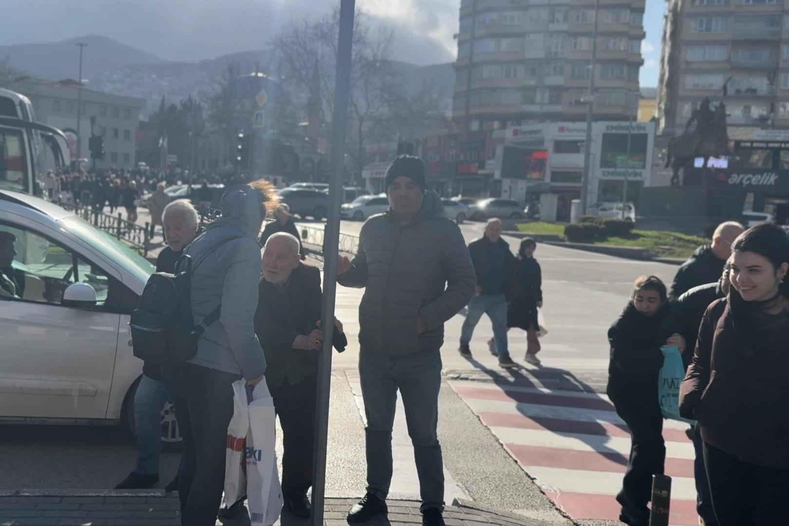 Şiddetli rüzgar özellikle yaşlı vatandaşları zor durumda bıraktı. Dengesini kaybederek düşmek üzere olan bir kişi, çevresindeki duyarlı vatandaşlar tarafından son anda tutuldu.
