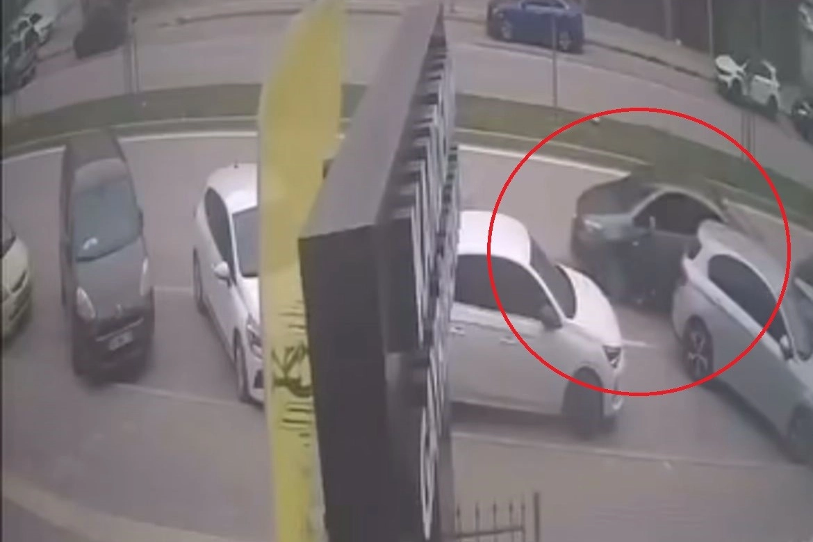 Yokuş üzerinde park halindeki bir otomobilin sürücüsü, el frenini çekmeyi unutunca, araç kontrolden çıkarak geri kaymaya başladı.