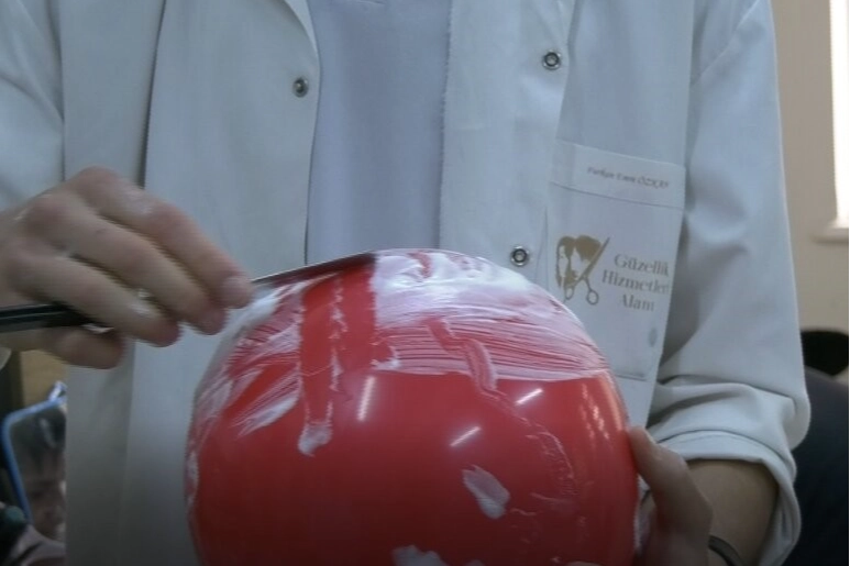 Sinan Eşkin, "Bu teknik Osmanlıdan günümüze kadar gelen bir teknik. Müşteri almadan önce öğrencilerimiz balonla uygulama yapıyorlar. Balonu patlatmayanlar sınavı geçtikleri takdirde gerçek müşteriyle baş başa kalıyorlar. Uygulama yapan öğrencilerimiz balonu patlatmadıkları için sınavı geçtiler. Okulumuzda hem kız hem de erkek öğrencilerimiz eğitim alabiliyor. Bu eğitimlerini 12. sınıfta staj eğitimleriyle işletmelerde daha da pekiştiriyorlar. Öğrencilerimiz mezun olduktan sonra kendi işyerlerini açabiliyorlar. İki yıl ön lisans programı okuyabiliyorlar. 4 yıllık fakülte eğitimi görüp alanlarında öğretmenlik de yapabiliyorlar." dedi.