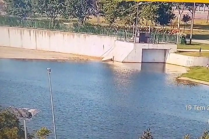 Sudan çıkarılan minik çocuk ailesine teslim edilirken olay sırasında büyük korku yaşadı. Cesurca müdahale ise parkın güvenlik kameralarına saniye saniye yansıdı.