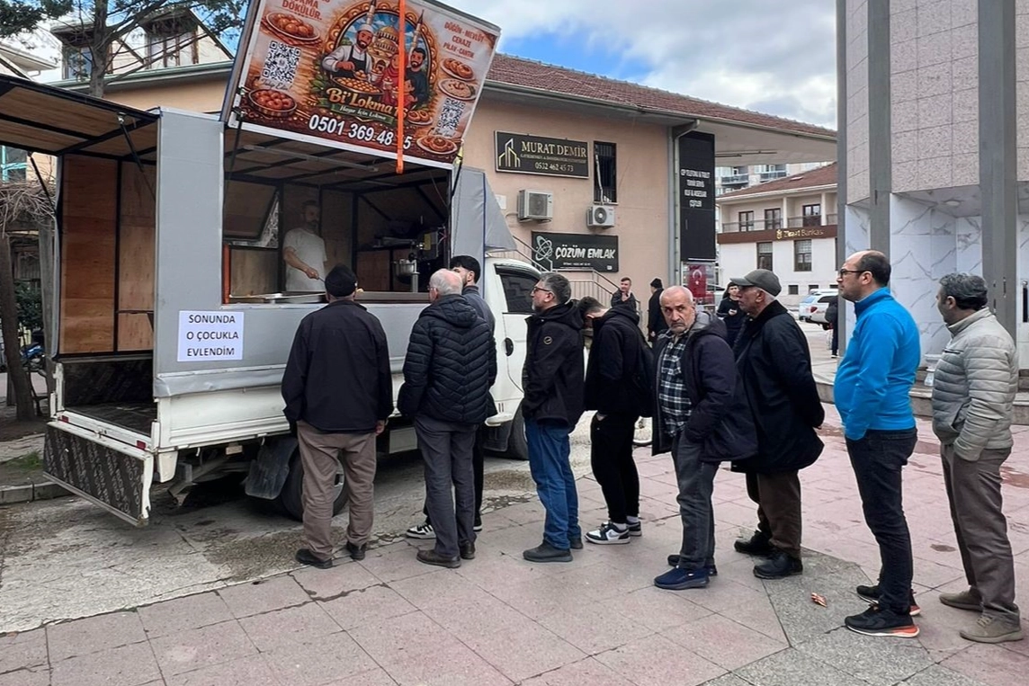 “SONUNDA O ÇOCUKLA EVLENDİM”İnegöl Sani Konukoğlu Camii önünde kurulan lokma aracında dağıtım yapılırken, aracın üzerine asılan “Sonunda o çocukla evlendim” yazısı kısa sürede dikkat çekti. Alışılmışın dışında mesaj, çevredeki vatandaşların ilgisini çekerken, lokma dağıtımı ilgiyle karşılandı.