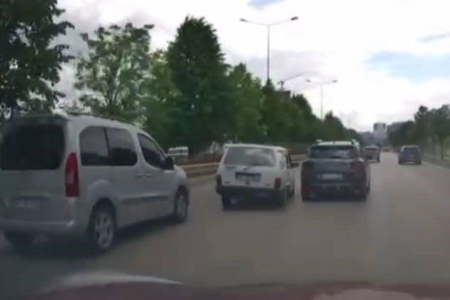 Görüntülerde, seyir halindeki TOFAŞ sürücüsünün bir anda gaza yüklenerek iki aracın arasına daldığı ve şerit değiştirirken diğer araçlara teğet geçtiği anlar yer aldı. Ölümle burun buruna gelinen o saniyelerde hem araç içindeki yolcular hem de diğer sürücüler büyük panik yaşadı.