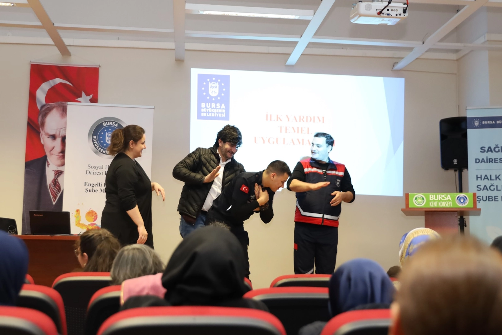 Bu kapsamda, Sağlık İşleri Dairesi Başkanlığı, Afet İşleri Dairesi Başkanlığı ve İtfaiye Dairesi Başkanlığı iş birliğiyle "Temel Afet Bilinci, İlkyardım ve Yangın Önleme" eğitimi düzenlendi. Eğitim, işitme engelli bireyler ve ailelerine yönelik olarak Merinos Atatürk Kongre ve Kültür Merkezi’nde gerçekleştirildi.