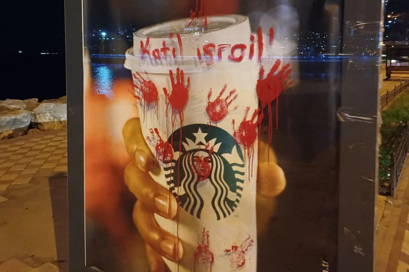 Kimliği henüz belirlenemeyen kişi veya kişiler, reklam panosunu kırmızı boyayla kaplayarak kanı simgeleyen el izleri bıraktı ve görselin üzerine “Katil İsrail” yazdı. Gece saatlerinde gerçekleştiği tahmin edilen eylem, büyük yankı uyandırdı.