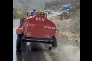 ‘Balıkesir’ plakalı römorkunun tekerleği patlak olmasına rağmen jant üzerinde su taşıyan bir çiftçi, sosyal medyada “Türk halkının dayanışması” başlığıyla ilgi odağı oldu.