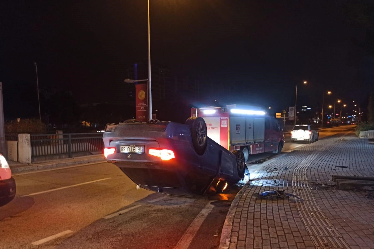 Kaza, merkez Nilüfer ilçesi İzmir istikameti Odunluk Metro Durağı mevkiinde meydana geldi. Edinilen bilgiye göre, merkezden İzmir istikametine seyir halinde olan 16 BTU 68 plakalı araç, yağış sonrası kayganlaşan yolda sürücüsünün idaresinden çıkarak takla attı.