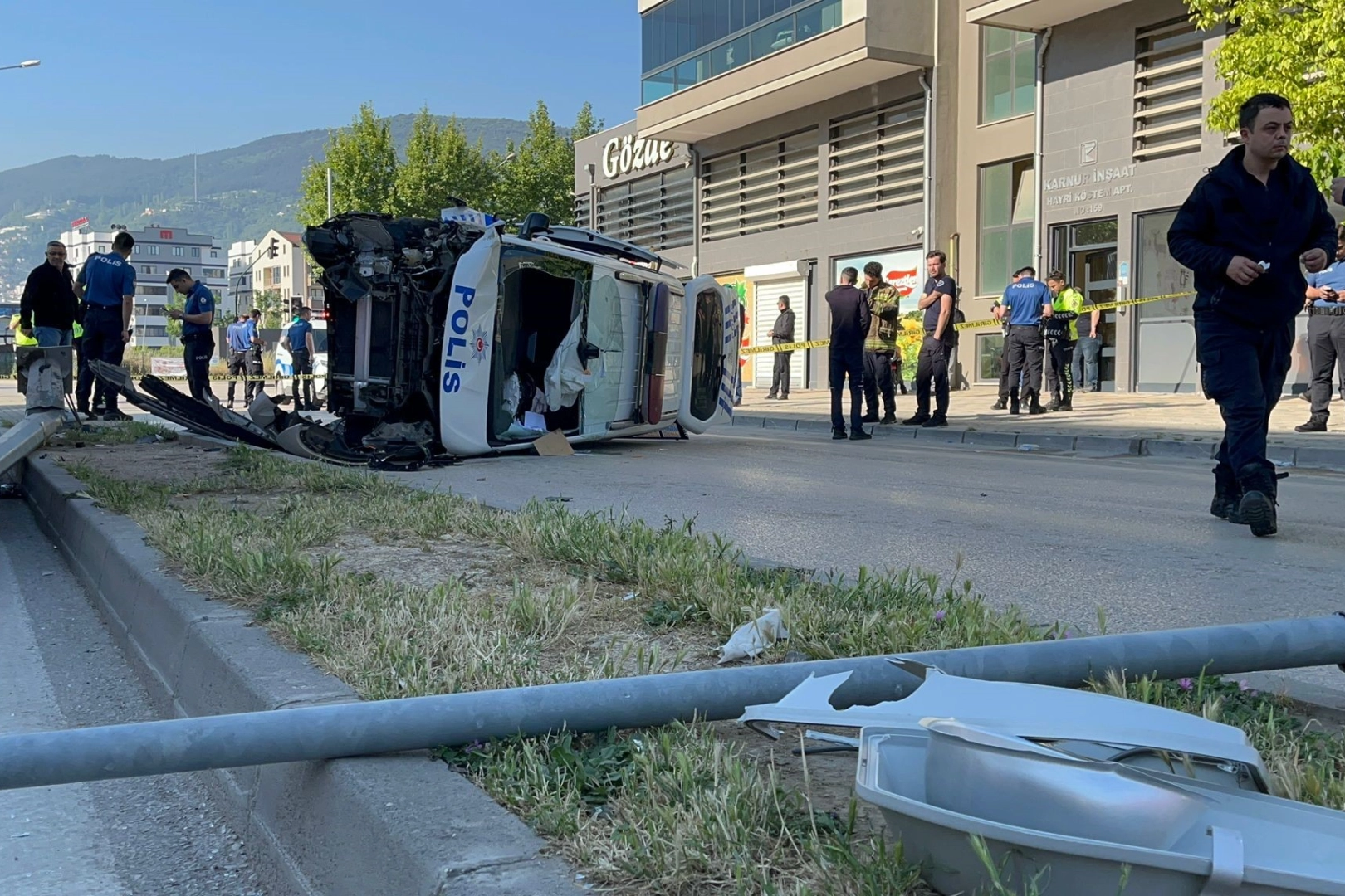 Edinilen bilgilere göre, polis ekibi kadına şiddet ihbarına müdahale ettikten sonra, mağduru güvenli bir şekilde kurtarıp geri dönüş yoluna geçti. Polis aracının sürücüsü, Nilüfer Caddesi üzerinde yaptığı U dönüşü sırasında direksiyon hakimiyetini kaybetti. Kontrolden çıkan araç, orta refüjdeki aydınlatma direğine çarparak takla attı.