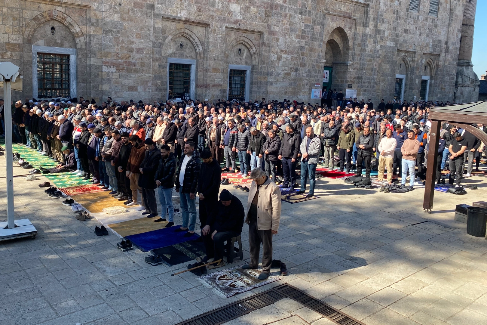 Havanın sıcak olmasının da etkisiyle çok sayıda vatandaş yanlarında getirdikleri seccadeleri cami avlusuna serdi. Omuz omuza saf tutan cemaat, birlik ve beraberliğin güçlü bir tablosunu oluşturdu.
